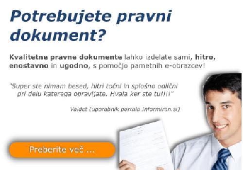 Postanite registriran uporabnik portala Informiran.si, ter si zagotovite brezplačen dostop do določenih pametnih e-obrazcev in brezplačno obveščanje o pravnih novostih.